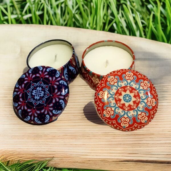 Material: Premium Tin (for the jar), Paraffin Wax (for the candle), Fragrance Oils (for scent)